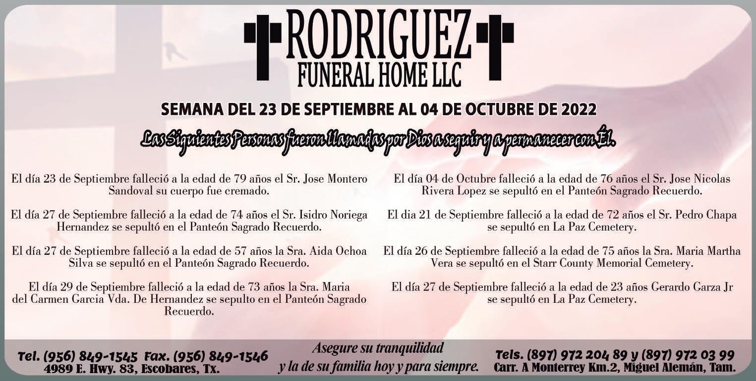 Le sobreviven tres hermanas, Hermila E. García (Carlos), María Delia Rodríguez (Alonzo) y Emma Y. Vásquez (Mario) y sus sobrinas, sobrinos así como nietos.