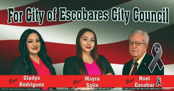 Noel Escobar de 87 años hizo historia al mantenerse cómo Mayor de la ciudad de Escobares por 18 años. Entre otras actividades, se le reconoce su destacada trayectoria personal y profesional cómo miembro de las Fuerzas Armadas en el Campo de Pendleton, California del ejército de los Estados Unidos.