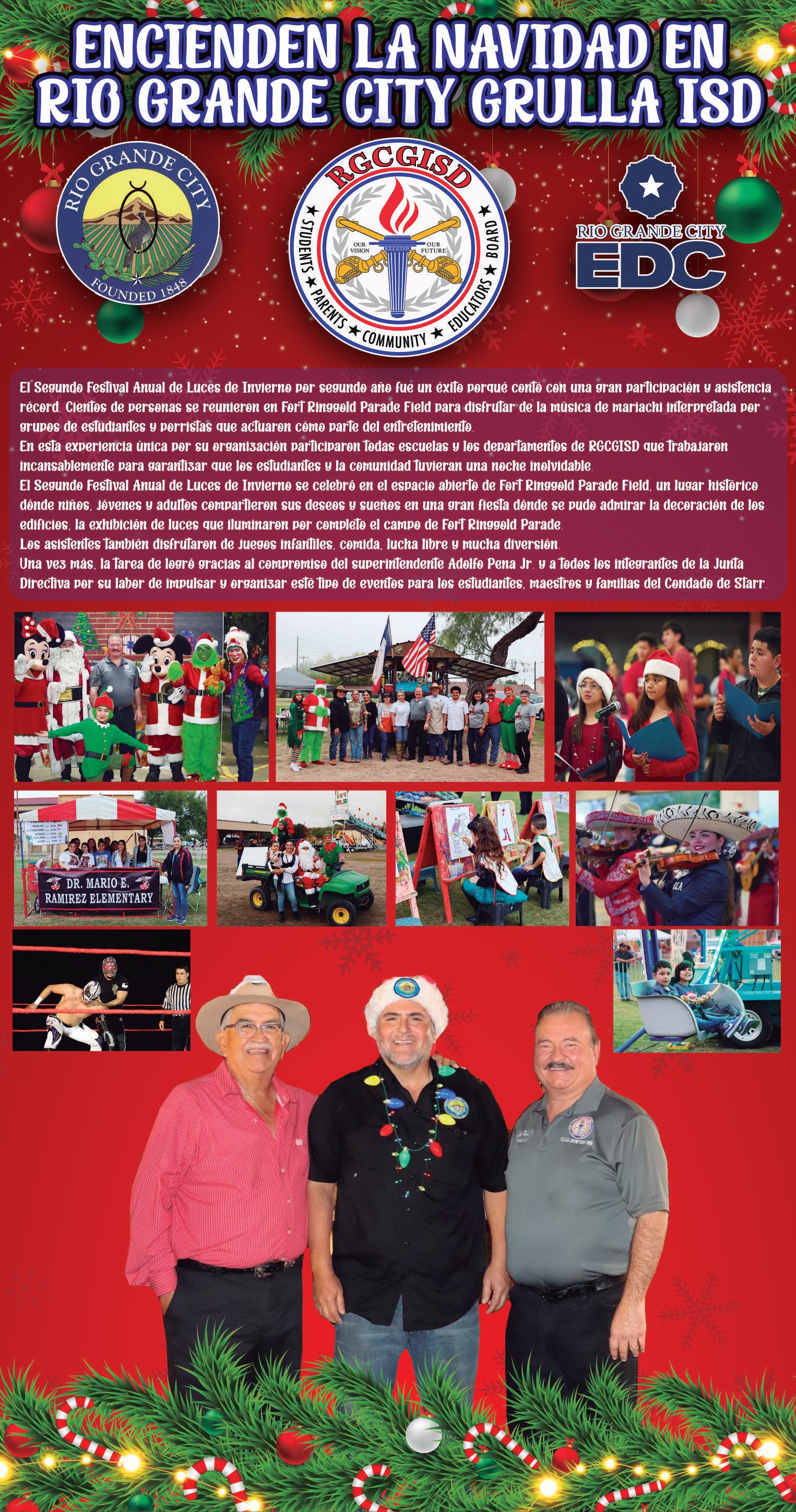"Es tiempo de compartir, de reflexionar y de reconocer que lo más importante es la unión, la paz y el bienestar de las familias de Miguel Alemán", dijo el presidente municipal Biol. Ramiro Cortez Barrera, al encabezar junto con su esposa Sra. Andrea Aguirre de Cortez, la presidenta del Sistema DIF, Dra. Andrea Cortez Aguirre, e integrantes del Cabildo, el tradicional Encendido del Pino Navideño.