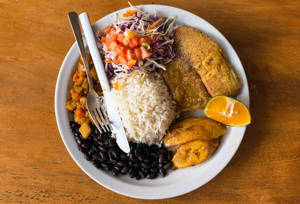 Das traditionelle Frühstück in Costa Rica heisst «Gallo Pinto» und besteht aus Reis, schwarzen Bohnen und gebratenen Bananen sowie weiteren Beilagen.