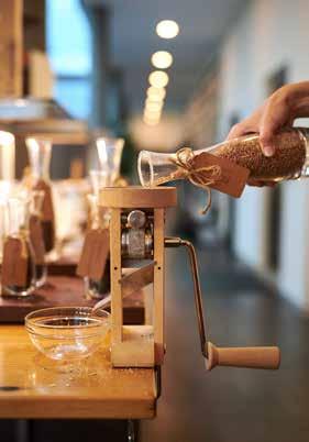 bübischen Lächeln, das mir schon bei der Begrüssung aufgefallen ist. Er hat grad eine Minute und setzt sich kurz zu mir. Der gebürtige Portugiese hat 2019, wenige Monate nach der Eröffnung, die Filialleitung übernommen. «Und dann kam Covid … Dass es schwierig war, wissen wir alle, aber für mich zählten damals vor allem die herzlichen Begegnungen mit den Leuten, die einen Take-away-Kaffee holten, um mir kurz Hallo zu sagen. Es gibt hier keine ‹Wand› zwischen den Gästen und uns Mitarbeitenden. Das tut sehr gut.» Sagt’s und begrüsst die nächsten