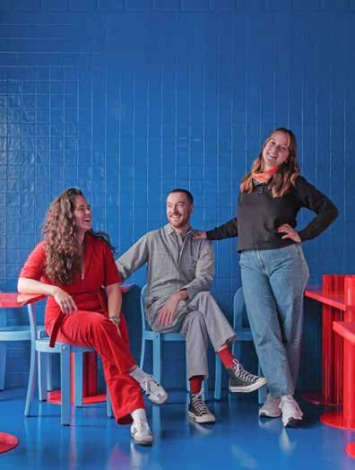 Im November 2023 ist der «Rote Delfin» an der Zürcher Langstrasse aufgetaucht. Dass er bereits wenige Monate nach der Eröffnung auf einer Erfolgswelle schwimmt, freut das Gastrotrio Meret Diener, Linda Hüsser und Samuel Kürz. Diener und Hüsser kennt man vom Pop-up «iklämmt», wo sie in der «Olé Olé Bar» glustige GrilledCheese-Sandwiches verkauft haben, sowie als Gastgeberinnen der «Goldige Guttere».