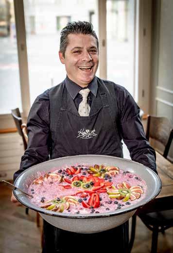 schem Essen. «Damals wie heute bin ich überzeugt, dass man zwei Drittel planen kann und für das dritte Drittel offen sein muss. Sonst ist man nicht im Fluss und zerbricht», sinniert die passionierte Gastronomin. Entsprechend war sie offen dafür, gefragte Speisen ins Angebot aufzunehmen. Da Davos seit jeher bei Kurgästen sowie Sportlern und Sportlerinnen hoch im Kurs steht, legten Svea und Orlando ihren Fokus auf Gesundes und Regionales. «Seit Beginn fügen wir unserem Birchermüesli oder unseren Fruchtsäften keinen Zucker hinzu. Von unserer be-