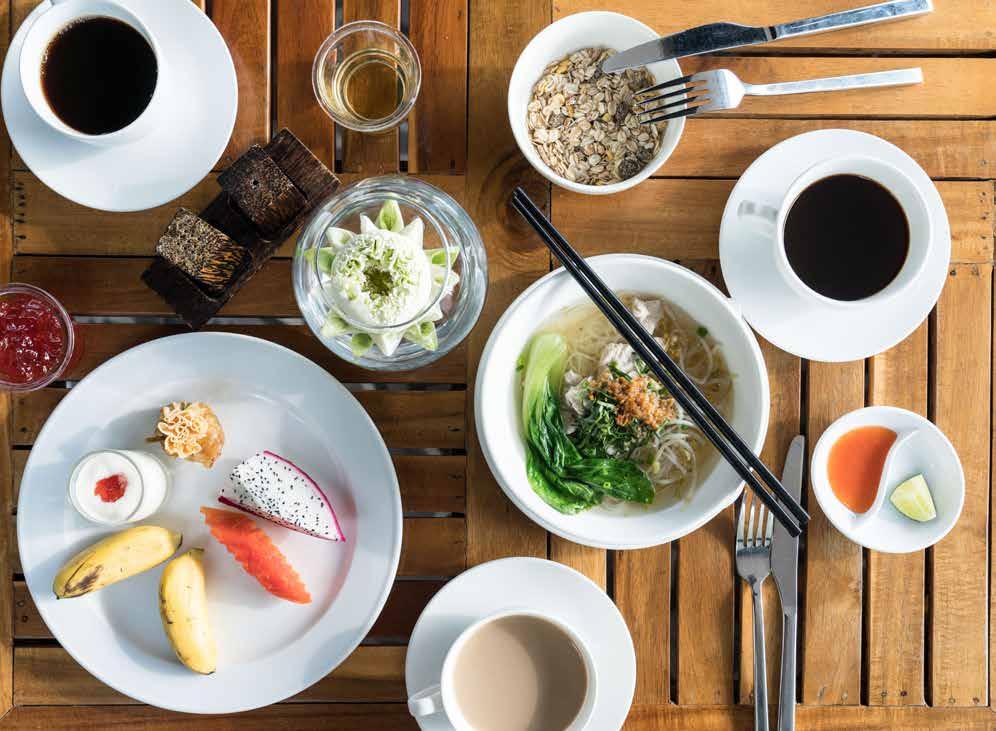 Eine Reisnudelsuppe mit Gemüse, dazu ein paar tropische Früchte und eine Tasse Tee – so frühstückt man in Kambodschas Hauptstadt Phnom Penh.