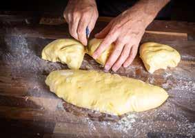 Il verse à présent le lait coloré par le safran dans le pétrin, ajoute la farine, les œufs, la levure, le sel et le levain-chef, puis lance le pétrissage. Dès que la pâte est homogène, il ajoute le beurre et poursuit le pétrissage pendant quelques minutes. Après une heure et demie de pointage à température ambiante, Gérald Saudan portionne la pâte à brioche et lui donne sa forme ronde. La pâte repose pendant une nuit. On la badigeonne ensuite d'œuf et y fait des incisions en losange. «La surface doit absolument être froide pour que la pâte ne s'affaisse pas quand on l'entaille», précise le maître boulanger, qui termine en plaçant une étiquette comestible sur laquelle est inscrite la mention AOP (Appellation d'Origine Protégée).
