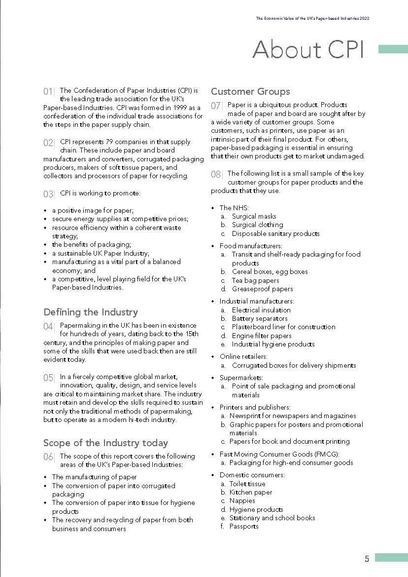 8. UK Industry: CPI report on economic value of UK paper-based industries 2022.