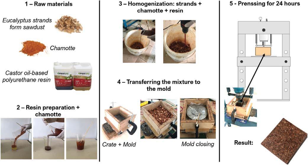 7. Wood Panel: Panels from eucalyptus sawdust and vegetal polyurethane resin .