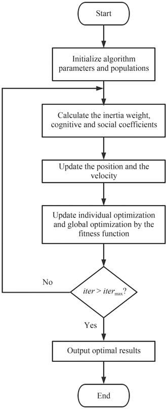 are cognitive and social coefficients, w represents the inertia weight that decays linearly with the number of iterations and is expressed as w=wmax (wmax wmin)iter/itermax, iter and itermax represent the current iteration number and maximum number of iterations, respectively, and wmax and wmin are 0.9 and 0.4, respectively. Fig.
