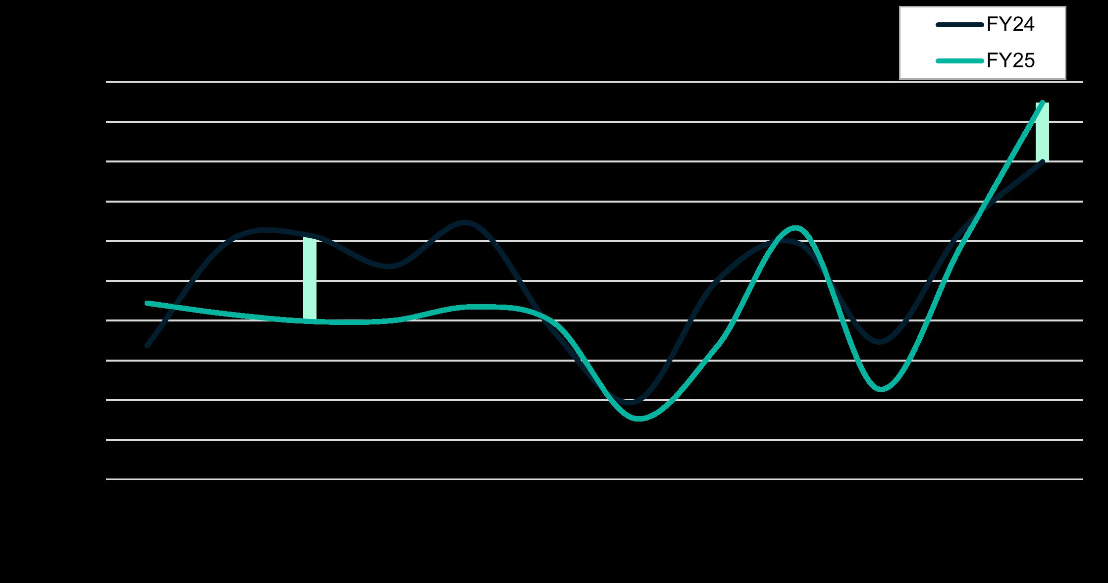 • Peter Warren 59 days FY25 vs 61 days FY24.
