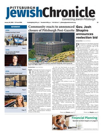 Candlelighting 7:57 p.m. | Havdalah 9:00 p.m. | Vol. 64, No. 18 | pittsburghjewishchronicle.org