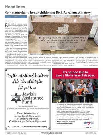 arry Rudel, the executive director of the Jewish Cemetery and Burial Association of Greater Pittsburgh, believes in the dignity of those buried in Jewish cemeteries — and that dignity extends beyond those who are visited regularly and memorialized with headstones. On Sunday, Dec. 12, the JCBA will dedicate a new monument to 71 children interred at Beth Abraham Cemetery, many in unmarked graves. Rudel said that Beth Abraham is the area’s third-oldest cemetery. While most Jewish cemeteries have children’s sections, he noted it’s not unusual for some graves to be unmarked. “Often, there are no arrangements when a child passes away, especially in older cemeteries,” he said. “In Beth Abraham, almost half of the graves are unmarked.” The identities of the children are maintained in JCBA records, Rudel said, and can also be found in the Western Pennsylvania Jewish Cemetery database at the Heinz History Center’s Rauh Jewish History Program and Archives. Each of the names will be read aloud as part of the dedication. The monument, which is the size of a