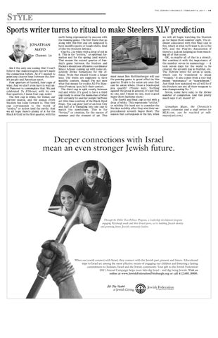 STYLE Sports writer turns to ritual to make Steelers XLV prediction JONATHAN MAYO