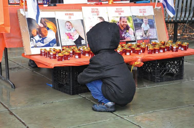 The few children who attended last week’s outdoor Squirrel Hill vigil didn’t speak much. Nestled beside their parents, the young Pittsburghers watched adults embrace, stand silently in the rain and proceed to a small, covered stand to memorialize Shiri Bibas and her infant sons, Ariel and Kfir. Surrounded by orange balloons, the tented table displayed photographs of the Bibases and rows of yahrzeit candles. For more than an hour on Feb. 26, community members approached the kneehigh table, reached for matches or lighters and kindled flames in memory of the slain Israeli mother and her two small children.