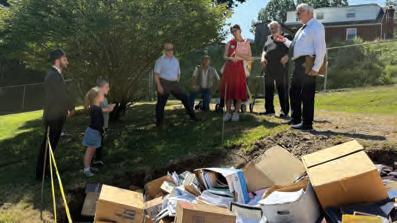 Following the unveiling, we held a Community Book Burial (Genizah). In Jewish practice, holy books, prayer shawls, and sacred writings (shaimos) that are worn or damaged are never discarded casually— they are buried with the same reverence as those who used them. is year, we respectfully buried an estimated 14 tons of shaimos from across Western Pennsylvania.