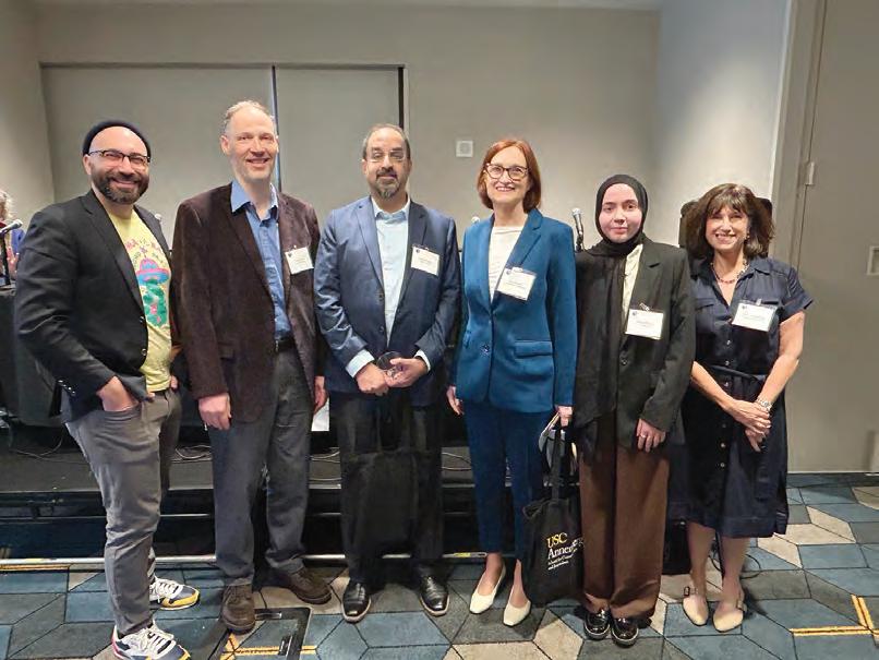 p From left: Panel organizer Jack Gordon; Peter Smith of the Associated Press; Niraj Warikoo of the Detroit Free Press; panel moderator Ann Rodgers of the Catholic Diocese of Pittsburgh; Betul Tuncer, editor-in-chief of The Pitt News; and PJC Editor Toby Tabachnick