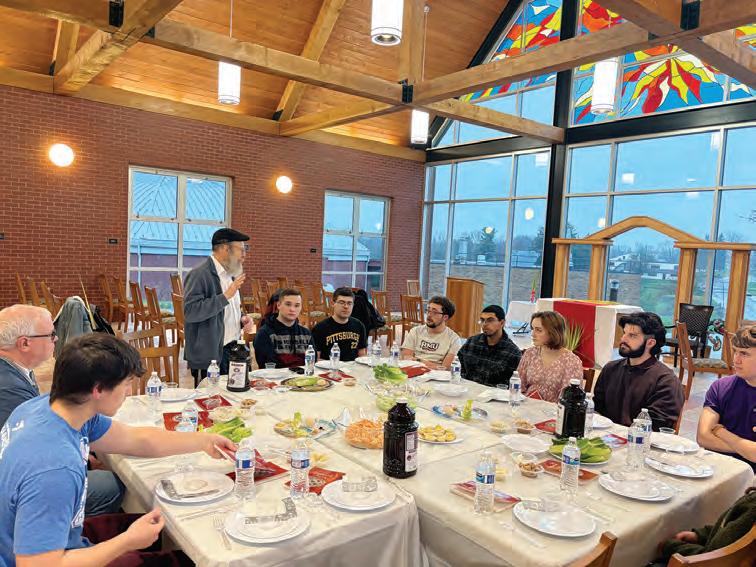 Shmuel Weinstein of Chabad House on Campus led a pre-Passover mock seder for students and faculty at Robert Morris University.