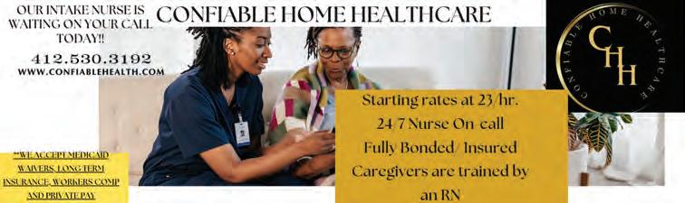 Are You Buying or Selling a Home? Let Us Guide You Through the Process! CALL THE SMITH-ROSENTHAL TEAM TODAY. 5501 Baum Blvd. Pittsburgh PA 15232 Shadyside Office | 412-361-4000 412-661-4456 www.kaminrealty.kamin.com 5125 Fifth Ave. 2 & 3 Bedrooms Corner of Fifth and Wilkins Spacious 1500-2250 square feet ”Finest in Shadyside” 412-661-4456 www.kaminrealty.kamin.com FOR RENT Business & Professional Directory BUYING: Grandma’s VERY Old Vintage/ Designer Clothing, Costume Jewelry, Hats, Box Purses, Cocktail-Evening Wear, Hawaiian, Prom & Prairie Dresses, Velvets, Bellbottoms, Jumpsuits, Platform Shoes, Go-Go Boots, etc $ Cash Paid - Will Pick Up! $ Toll Free 888-736-7242 BUYING Please support our advertisers, and mention that you saw their ad here. We depend on them, and they depend on you! HOME CARE Veteran Senior Citizen Male Available Anytime Clean Up Home Care Help • Landscaping • Lawn Care Service • Flower Planting Call Gene Scott 412-310-3769 References upon Request • Window Cleaning • And more! www.pittsburghjewishchronicle.org Mature, non-smoking, professional is available to house sit or sublet, for June through August 2024 (flexible). If you are going out of town and need someone to watch over your home, I am the person to contact! I would consider caring for a small pet, as well. Louise @ 412-980-5116 or l.schulhof@gmail.com References upon request. House Sitting Services Available HOUSE SITTING Shawntee Jackson Professional care at home Patient Care Technician Private Duty Caregiver TEL 412.983.0904 jacksons.caregiver@yahoo.com 15 years of experience • References upon request • Squirrel Hill & surrounding areas CAREGIVER BBB MEMBER LIEBEL PAINTING Call “Mike” 412-672-5237 412-951-0013 RESIDENTIAL & COMMERCIAL INTERIOR EXTERIOR INSURED FREE ESTIMATES PAINTING
