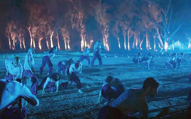 One darkly atmospheric section of the event — including tightly choreographed dancing — was filmed ahead of time in the parking area at Kibbutz Re’im, in the area where 364 people were killed at the Nova music festival.