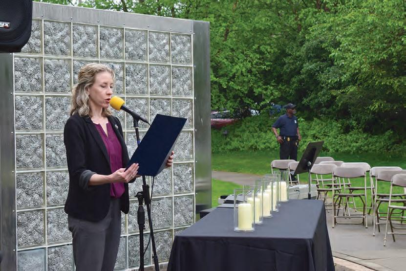 Examples of using that voice, she said, included speaking at school board meetings or annually introducing Elie Wiesel’s “Night” to area 10th graders.