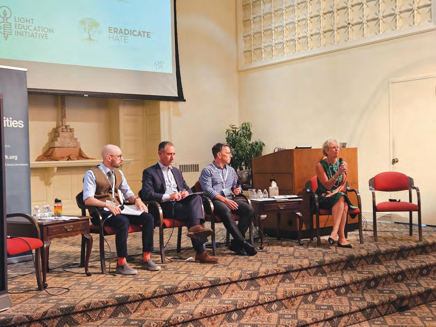 The audience, in a chorus, repeated “Paul.” It’s an act that Emily Loeb, director of programs and education at the Holocaust Center, echoed as she mentioned the 141 members of her family who were killed in the Holocaust. She shared her father’s belief that a person can die twice in Judaism: once when they physically die, and again when they are forgotten. Because of that, Loeb mentions those 141 every time she shares her grandparents’ story of surviving the Holocaust.