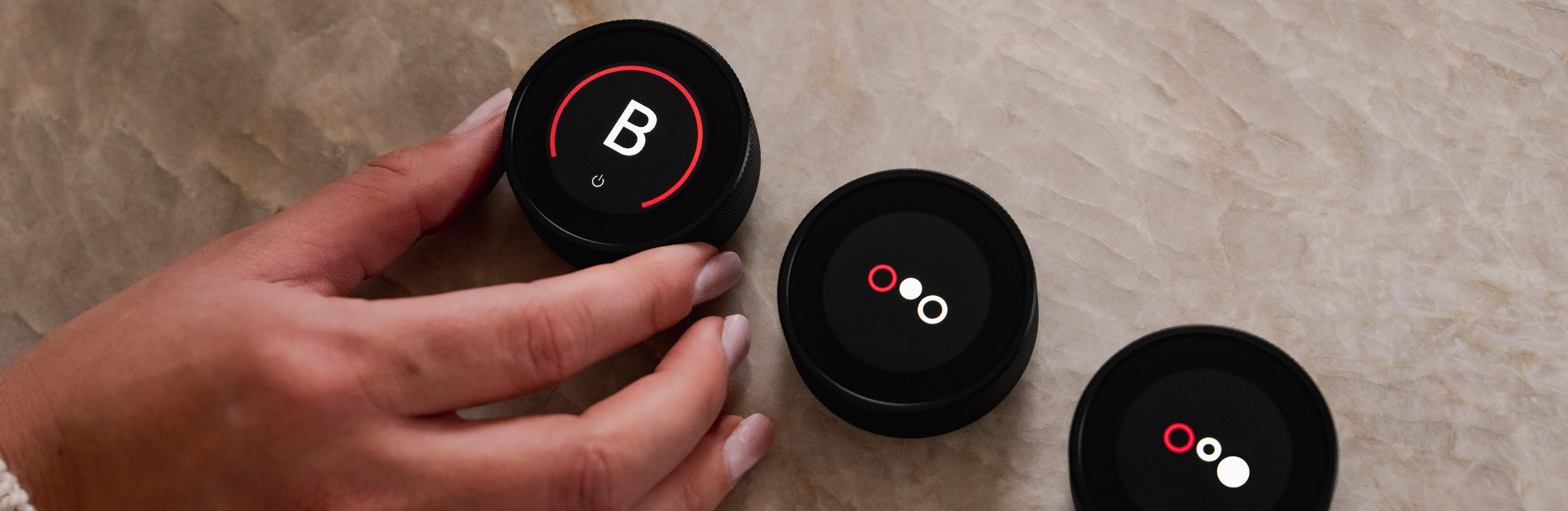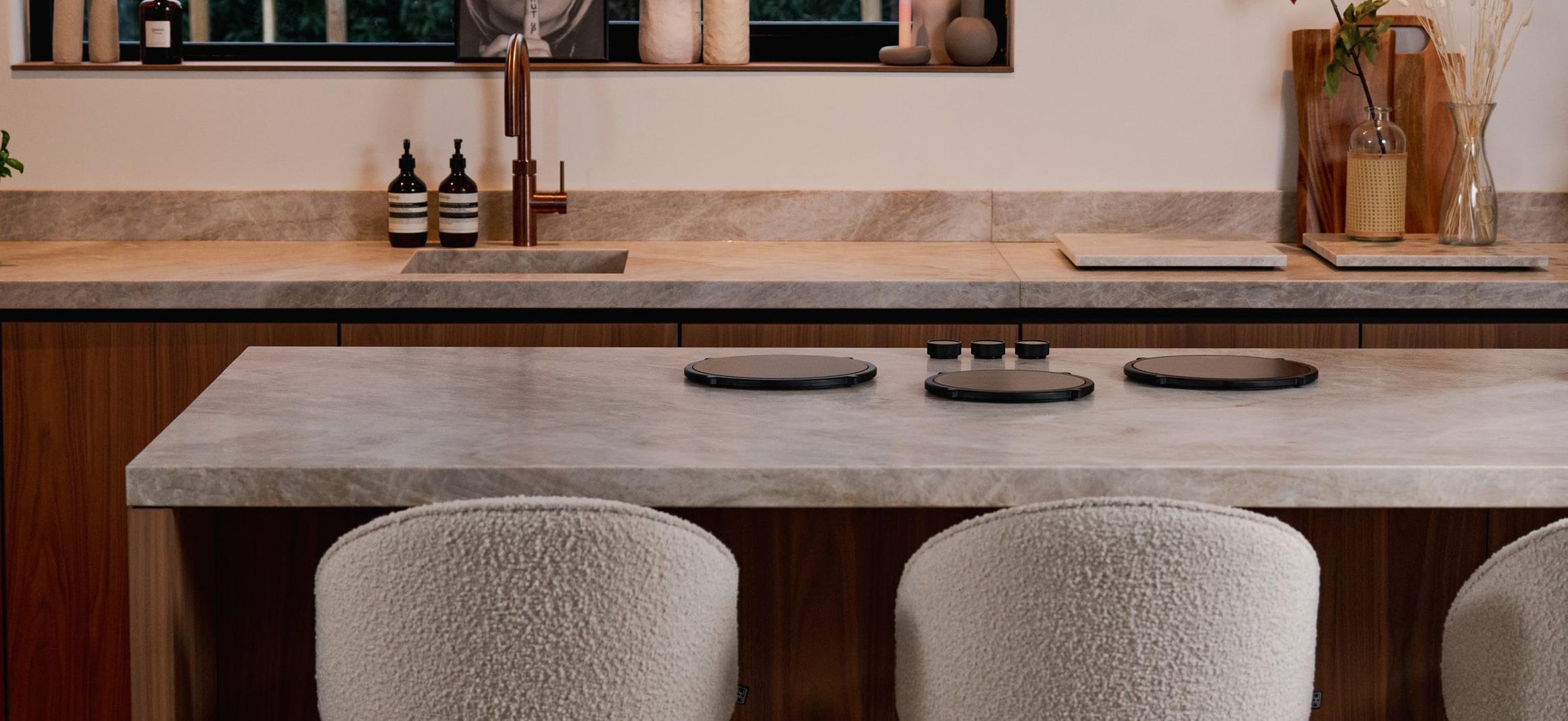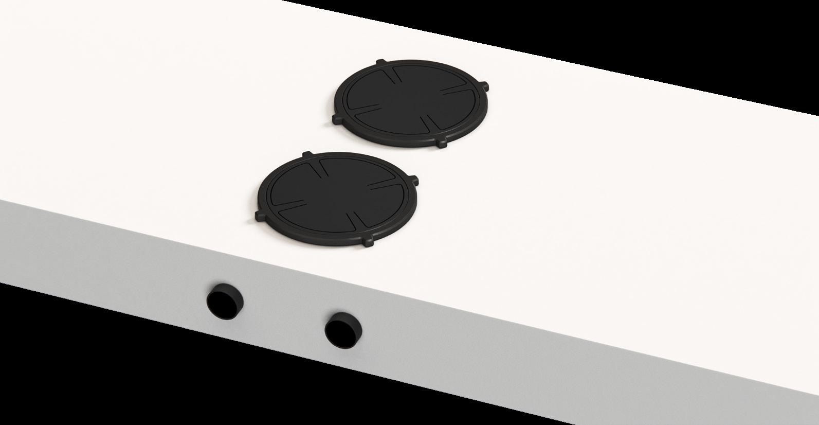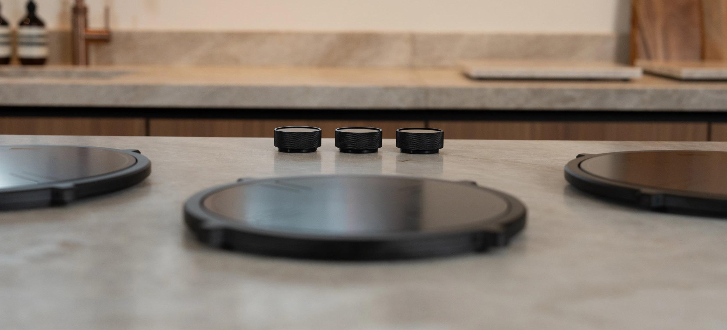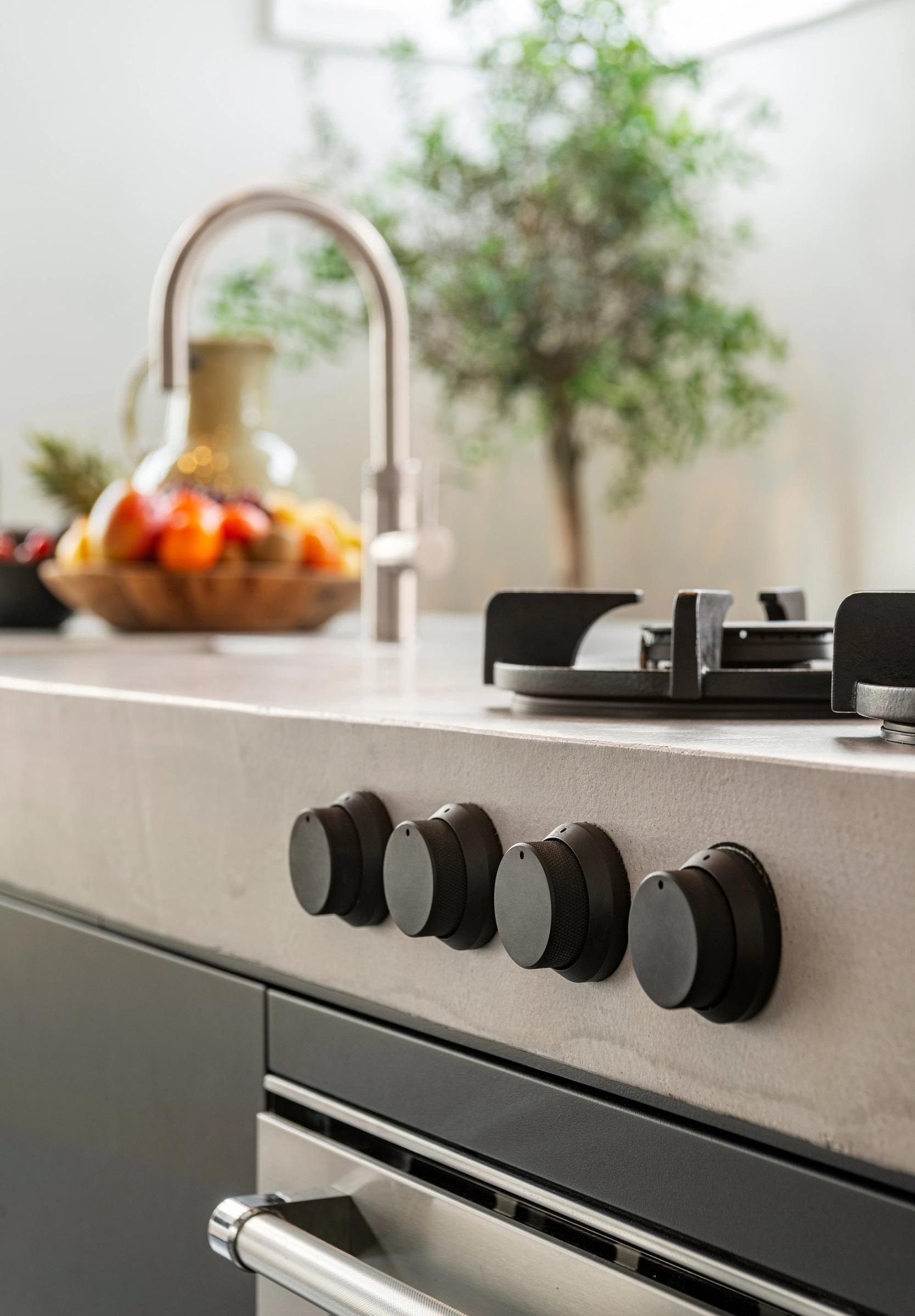 Choose between the unique Top Side or Front Side control options. With Top Side control, the aluminium knobs with a softtouch coating are placed on the countertop, while with Front Side control, these aluminium knobs with optimal grip are positioned at the front of the kitchen worktop. The latter provides more space and freedom of movement on the work surface.