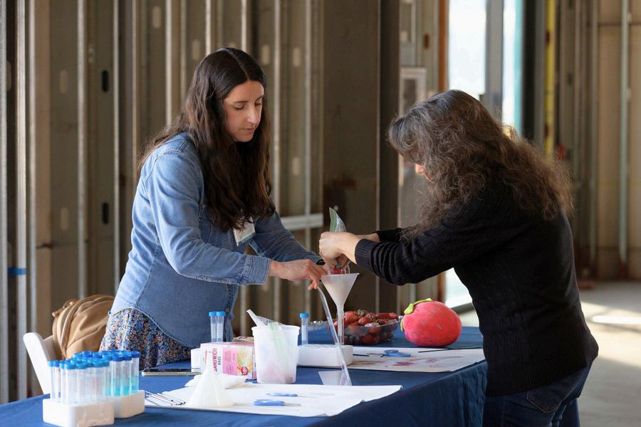 After the group exercises, participants enjoyed lunch and had a chance to explore hands-on life sciences concepts. Attendees were invited to extract DNA from strawberries, view petri dishes of bacteria under a microscope, and explore how T-cells attack infections with a puzzle matching game.
