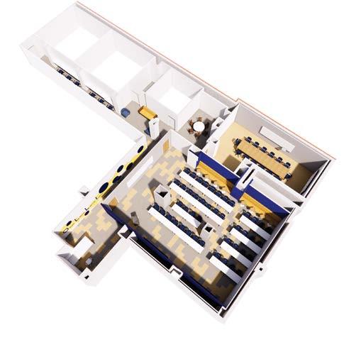 The space includes a 46-seat classroom, a fullyequipped conference room, a lounge area for members, a welcoming reception area, and the most up-to-date computer stations.