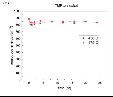 where J s 2 is the saturation polarization of the material [6]. The change in the induced anisotropy energy with the reannealing time of TMF-annealed samples and strain-annealed samples are shown in Figure 4.