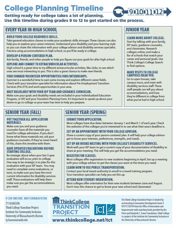 Adapted from the MN Office of Higher Education https://www.ohe.state.mn.us/mPg.cfm?pageID=1176 and the Port Jefferson School District https://www.portjeff.k12.ny.us/download/PDFs/HS/TIMELINE_FOR_COLLEGE_PROCESS.pdf