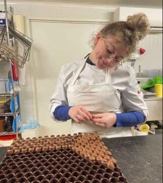 Fee Van den Bosch volgt sinds het tweede leerjaar les in PIVA, met chocolade als haar lievelingsvak. De afgelopen jaren heen heeft ze stage gelopen bij diverse topzaken, waaronder Chocolaterie Sjolaa in Mechelen, Patisserie De Baere in Knokke en dankzij Erasmus ook bij Lenôtre in Parijs. Haar laatste en meest favoriete stageplek was Chocolaterie Soetkin in Kontich. 'Fruitig en kruidig, zo kan men het chocoladewerk van Hans Goossenaerts en Nellie