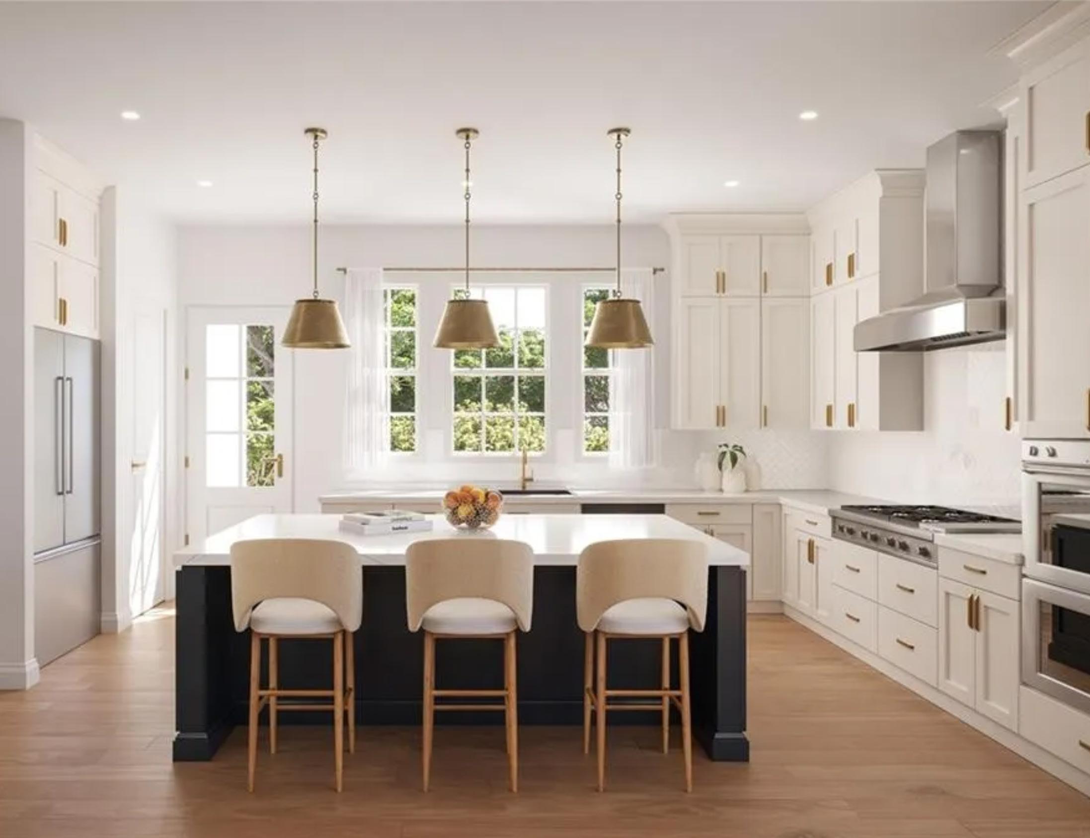 • Quartz countertops in kitchens, stainless steel appliances, and walk-in pantries