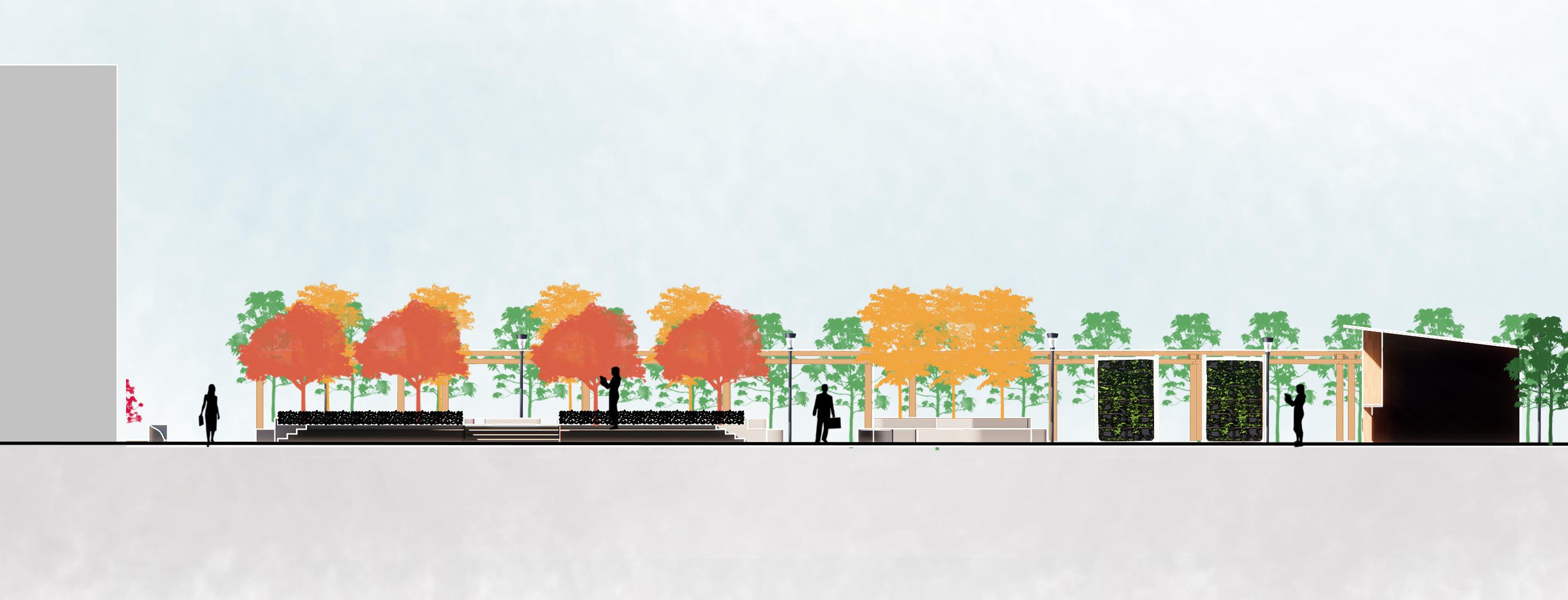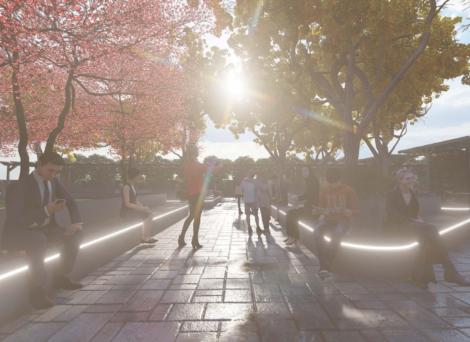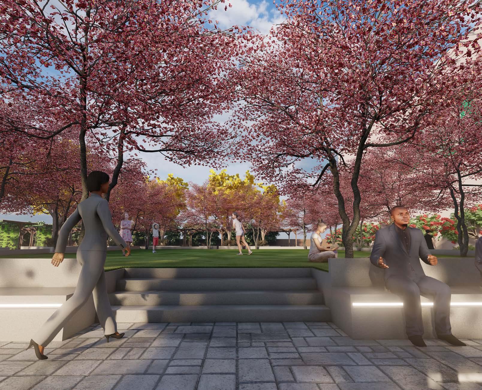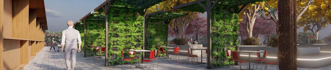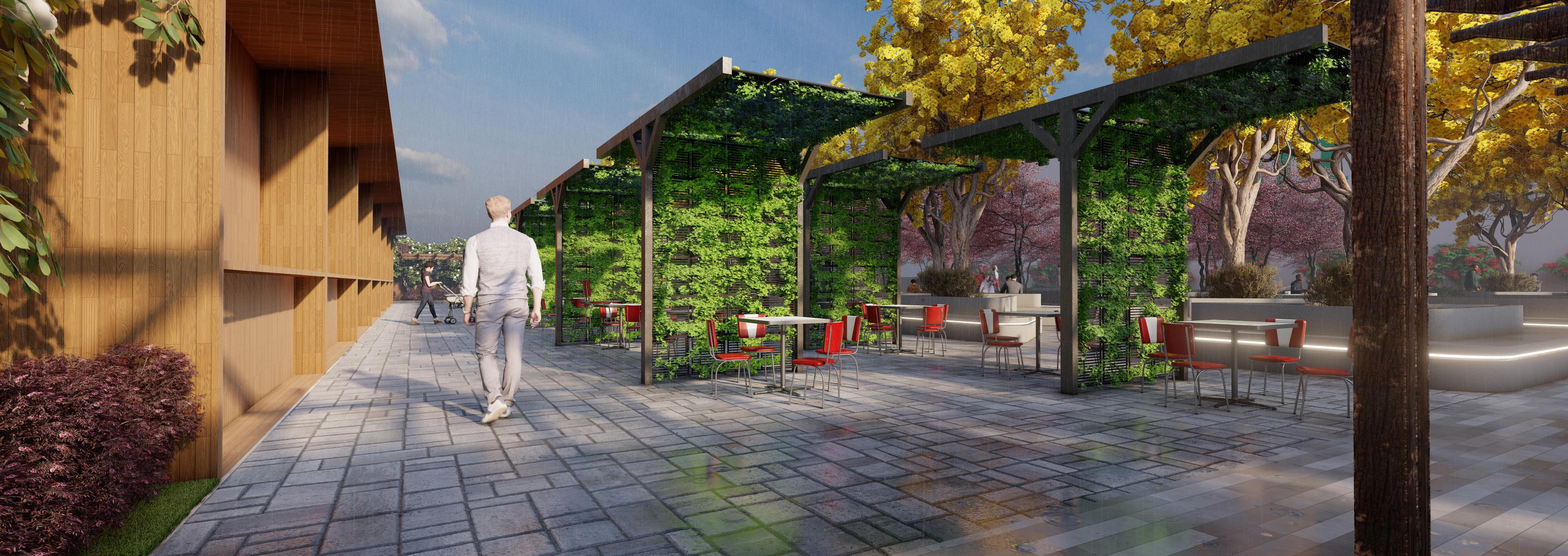 • Integrated green spaces, walkways, and seating areas to create an inviting environment for shoppers and pedestrians.