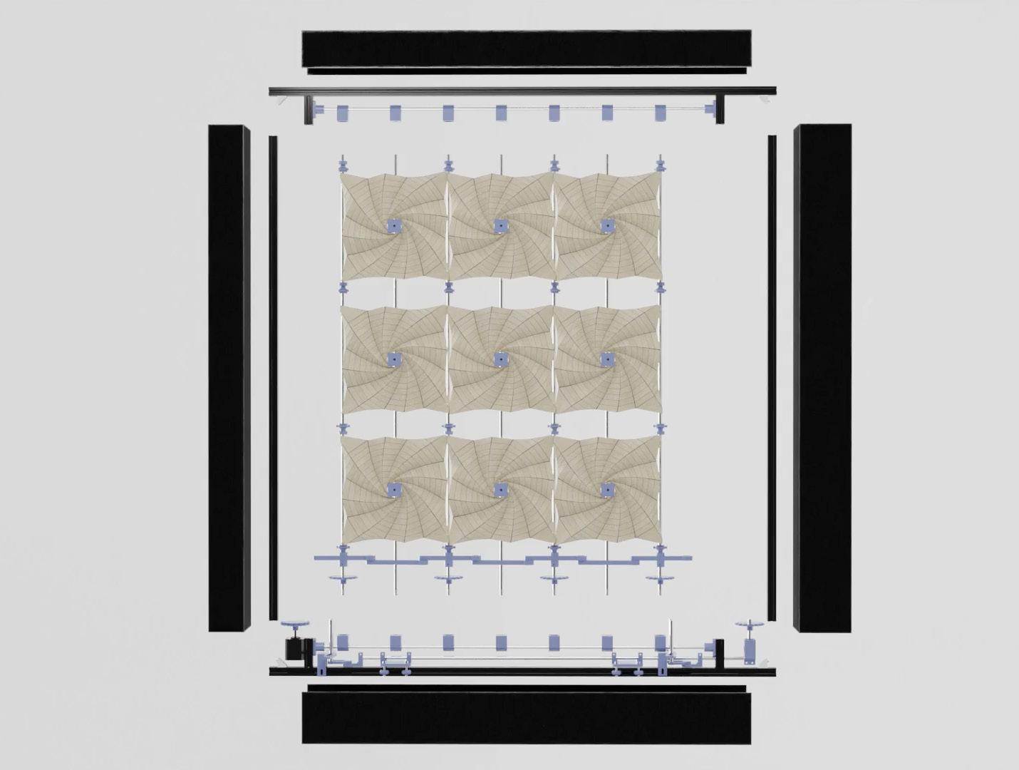 The concept employs damp screens that roll out on clay tile jaalis. The method is inspired from vernacular cooling methods. Inspired from satellites, the concept is powered through flasher models which dynamically function to provide cooling.