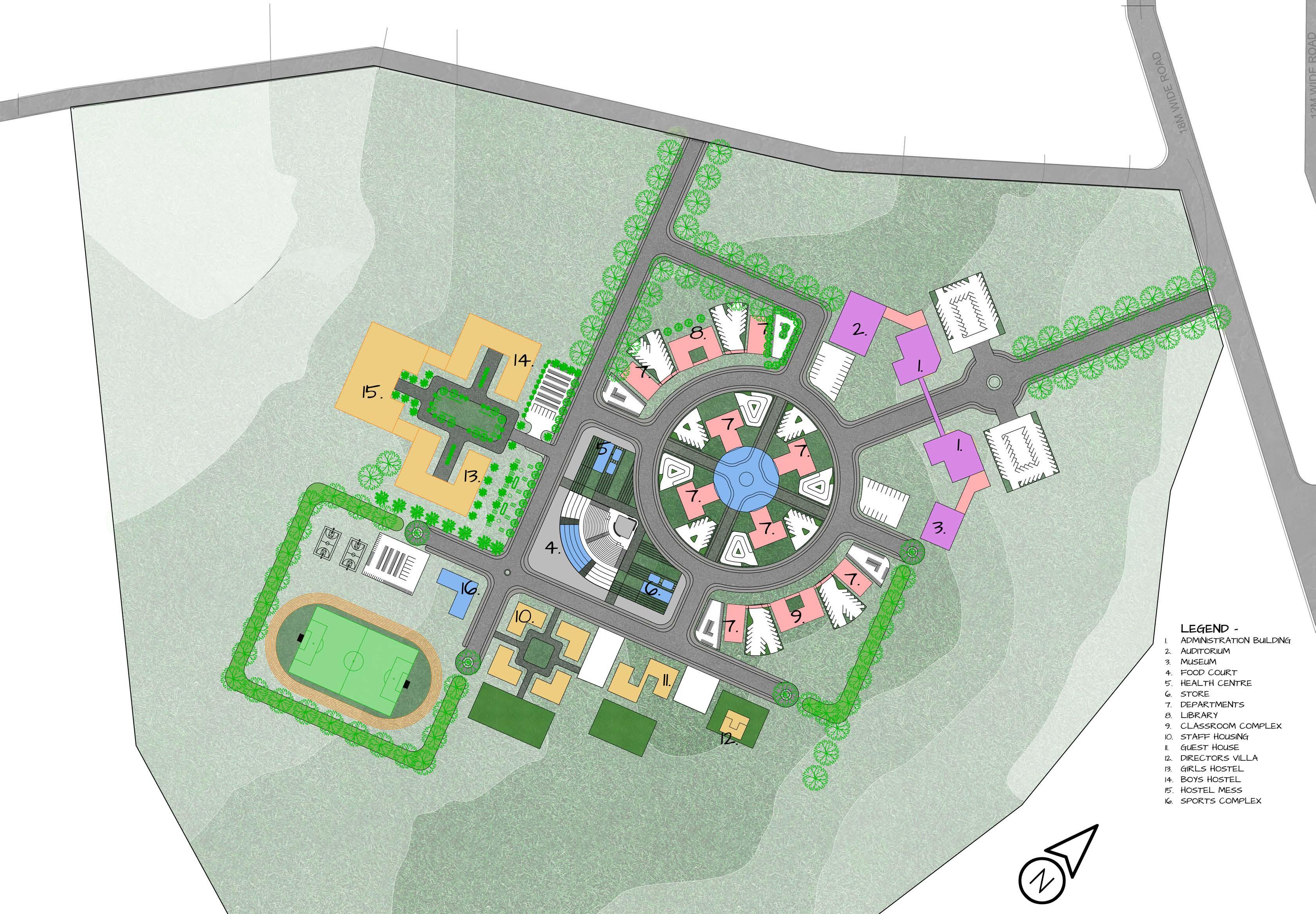 • Integrated green spaces, walkways, and seating areas to create an inviting environment for Students and Visitors.