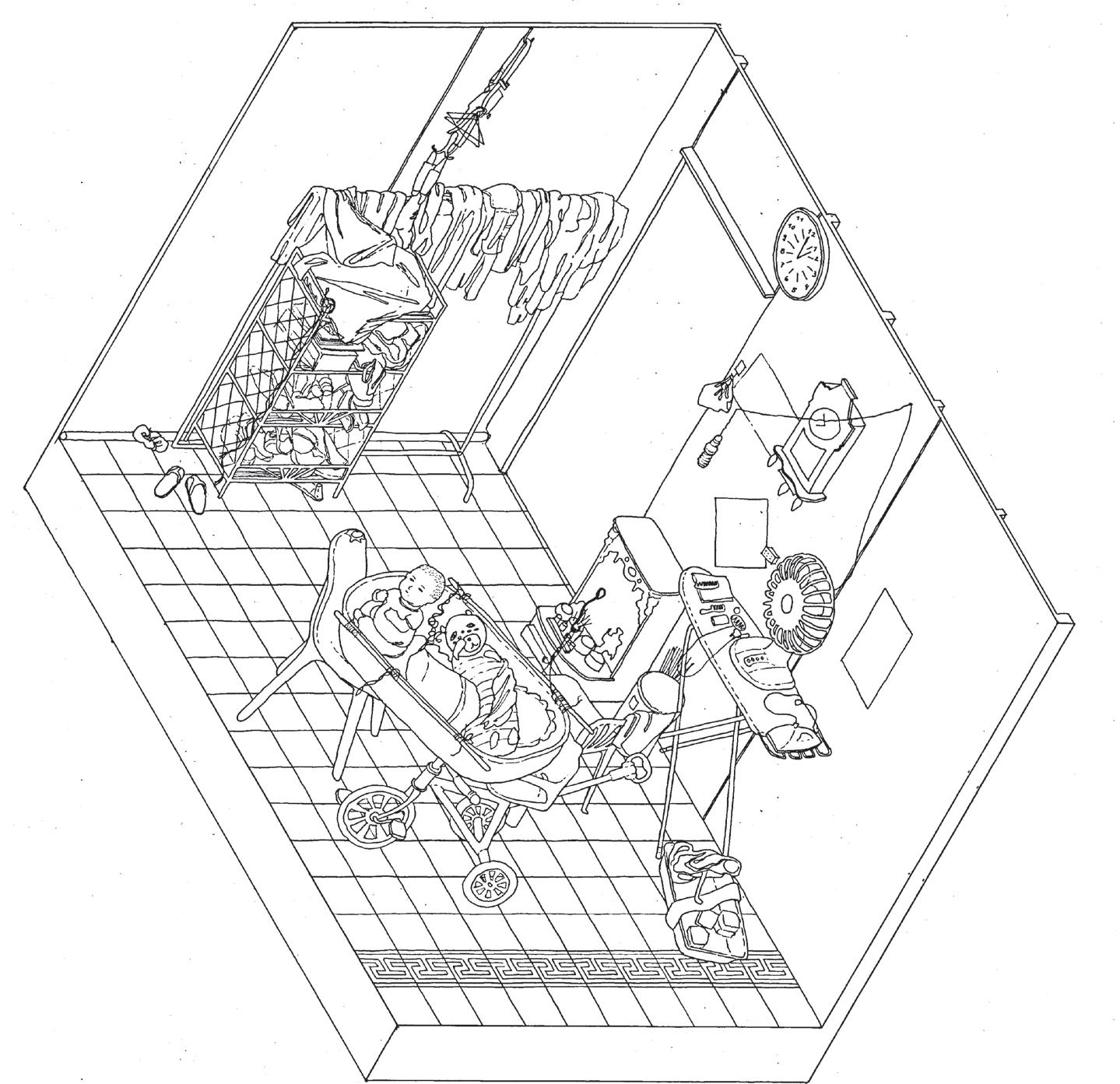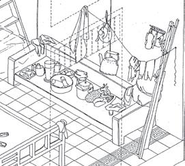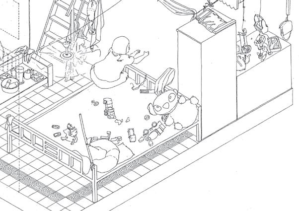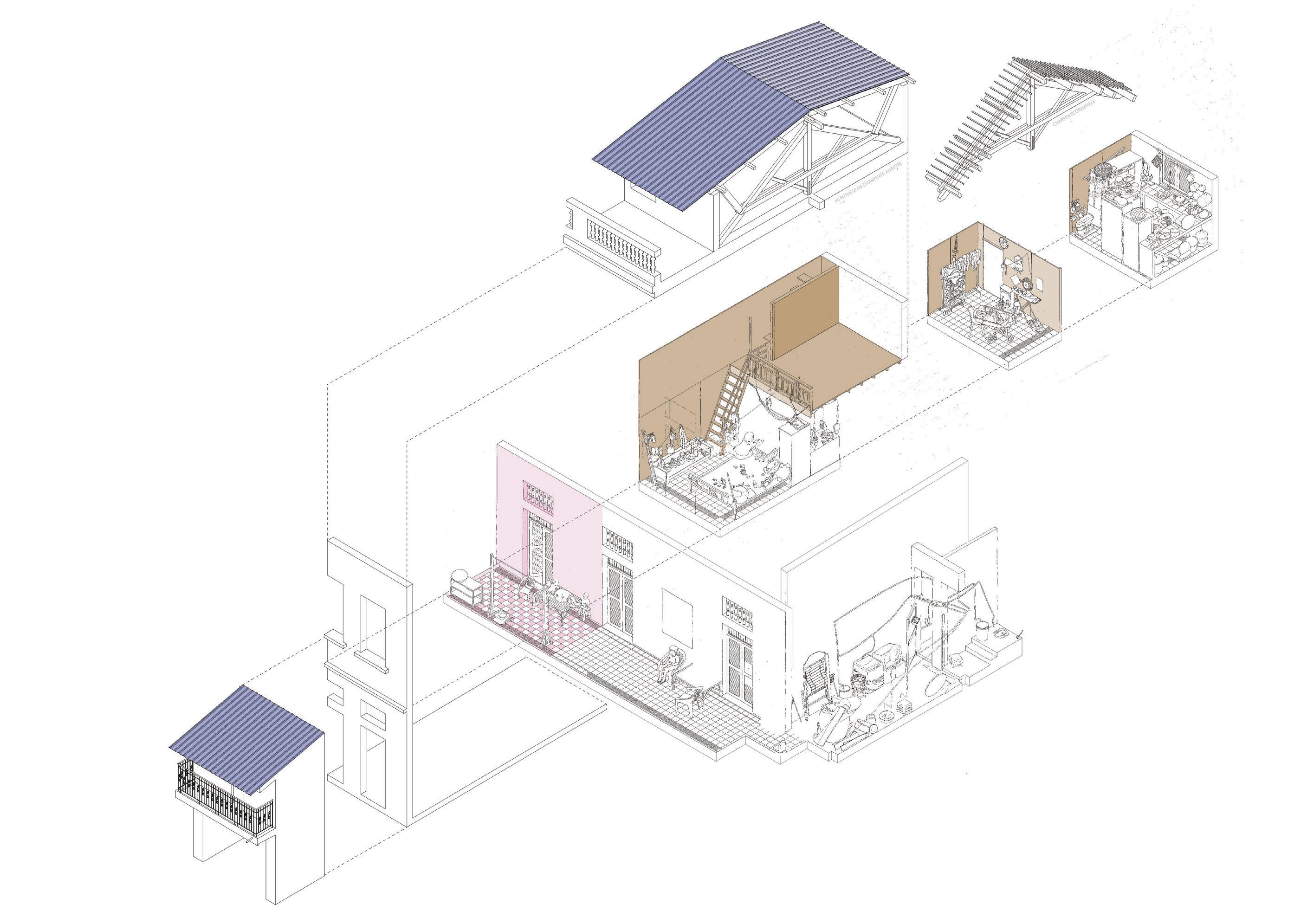 ET LE BESOIN DE SURÉLEVER SI POSSIBLE PLAN DE LOCALISATION: AXONOMÉTRIE DU BÂTIMENT PRINCIPALE: 1995 - 2000: DEUXIÈME PÉRIODE D’EXTENSION DU BÂTI EN TÔLE ET BRIQUE LIMITES D’USAGE DE SOL COLLECTIF POUR ACTIVITÉS DOMESTIQUES 1980 - 1995: PREMIÈRE PÉRIODE D’EXTENSION DU BÂTI MAJORITAIREMENT EN BOIS 1930: BÂTIMENT PRINCIPAL DE L’ÉCOLE 1975 - 1979: ABANDON (KHMER ROUGES) 1980: RÉOCUPATION DU BÂTIMENT DÉTAILDELOGEMENT PASSAGEDEL’ÉCOLECHINOISE TONLE SAP AV.DU QUAI SISOWATH RUE80 RUE82 PASSAGEDEL’ÉCOLECHINOISE REZ-DE-CHAUSSÉE ÉTAGE