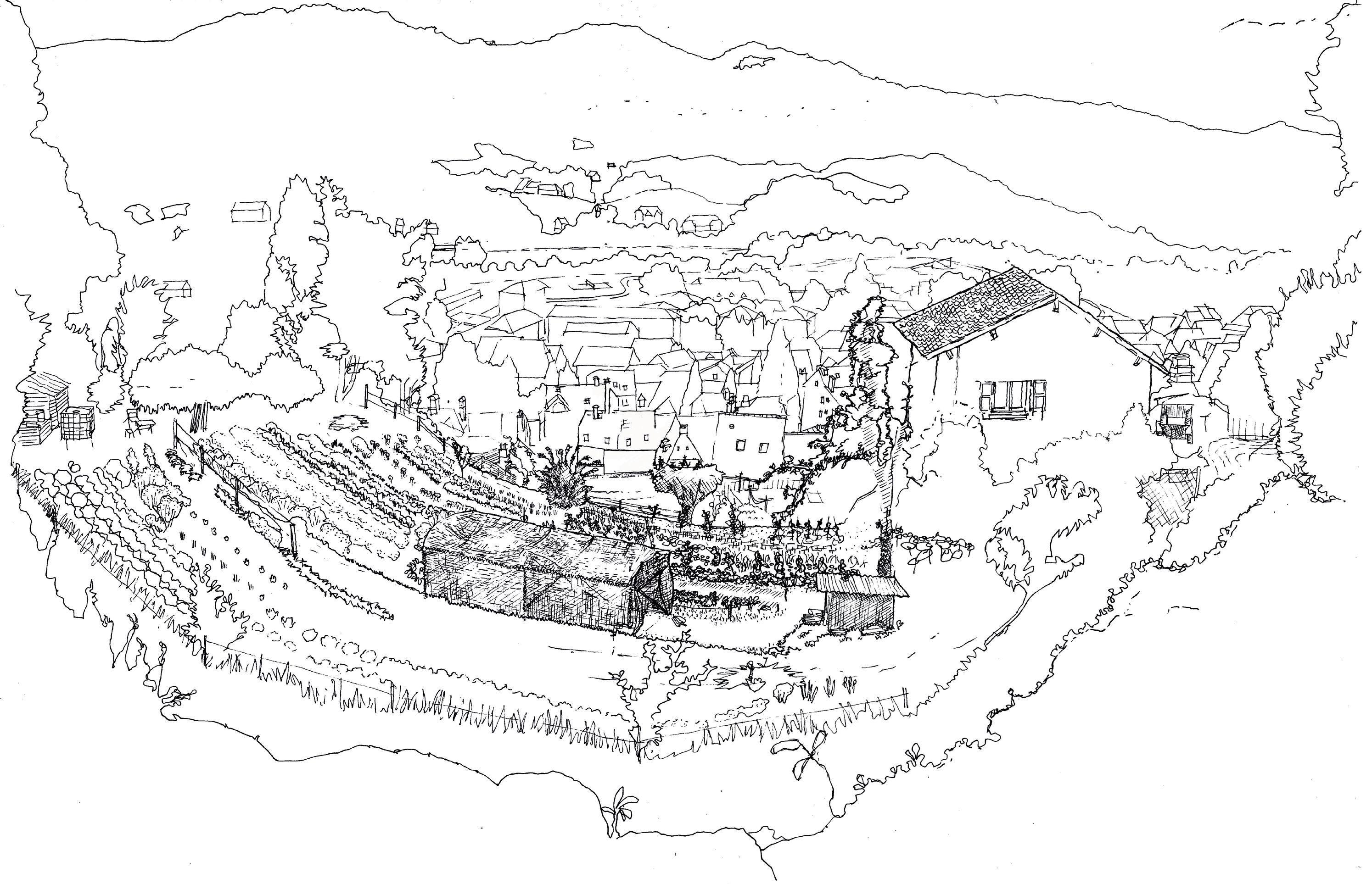 APRÈS MIDI DANS UN JARDIN QUI SURPLOMBE LE CENTRE HISTORIQUE DE VIC-SUR-CÈRE