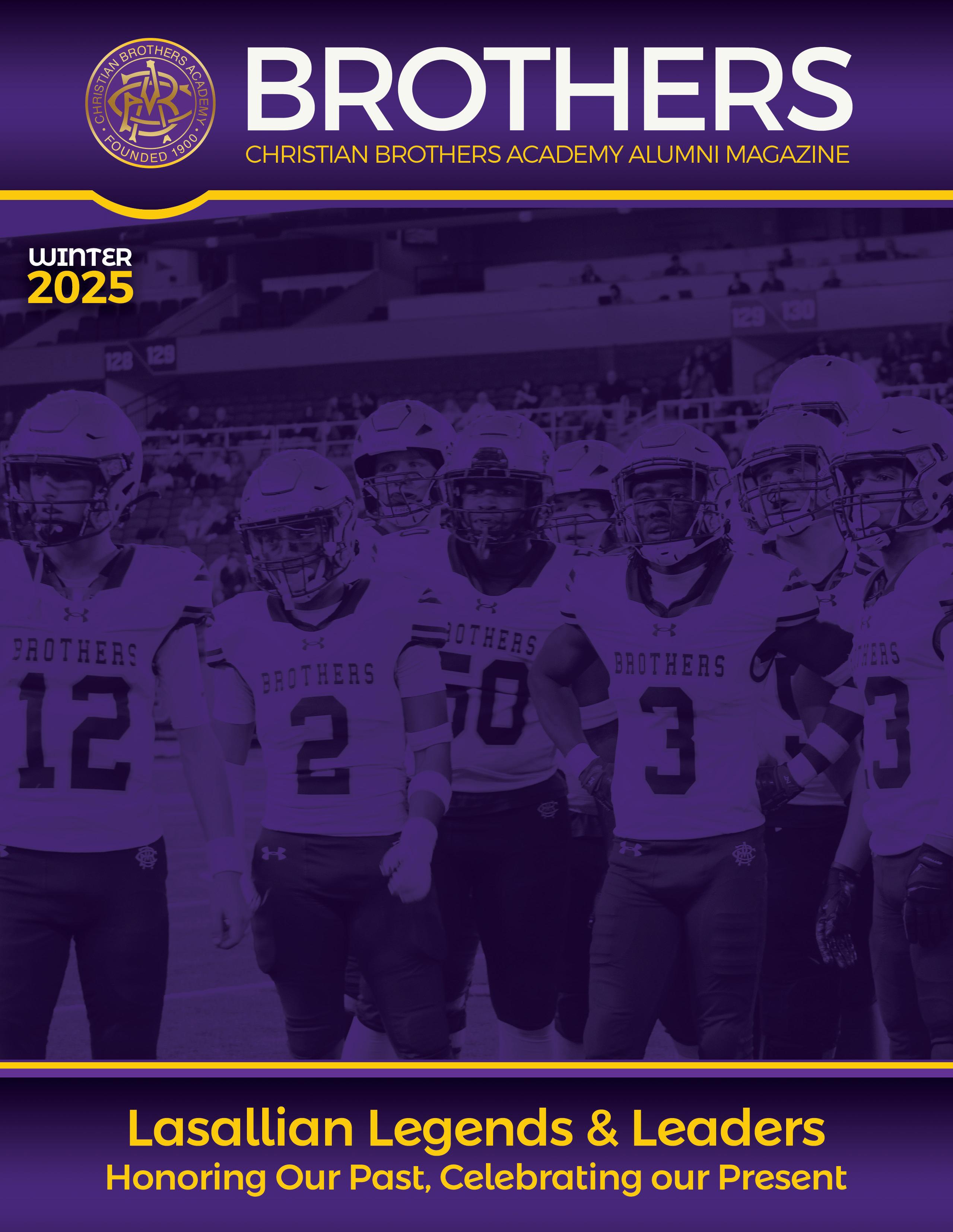 In this magazine, we present Vision 2030, our recently completed strategic plan that outlines the direction for Christian Brothers Academy over the upcoming years. This vision encompasses not only the future of our school but also involves all of us working together to ensure the Lasallian mission continues to thrive, adapting to new challenges while remaining true to our core values. Vision 2030 sets ambitious goals for our academic programs, campus, and community engagement, and we invite you to take an active role in this exciting journey. Whether you are an alumnus, a current parent, or a member of our broader Lasallian family, your participation is vital to the success of this vision.