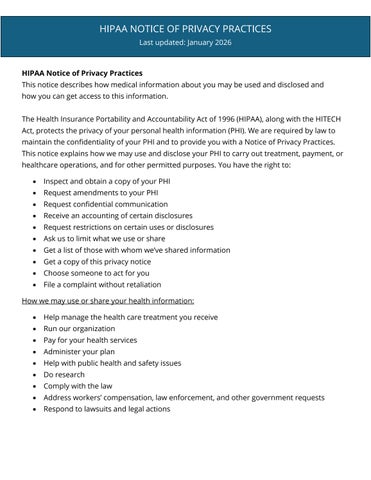 HIPAA NOTICE OF PRIVACY PRACTICES