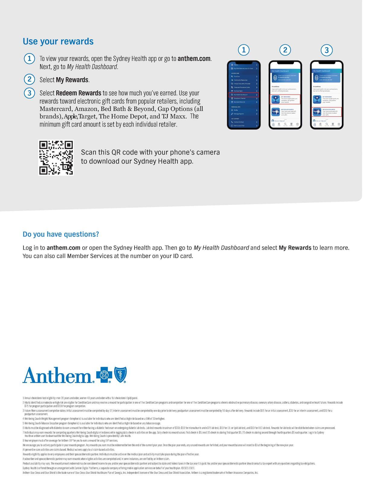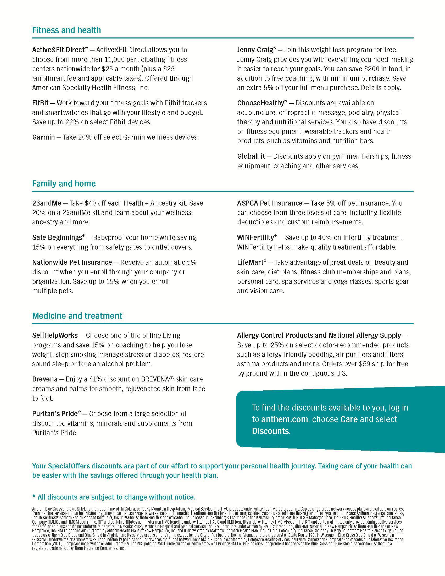 AsanAnthemmember,youqualify for discounts on products andservices that help promote better health and well-being.* Thesediscounts areavailable through SpecialOffersto help yousavemoney while taking care of yourhealth.