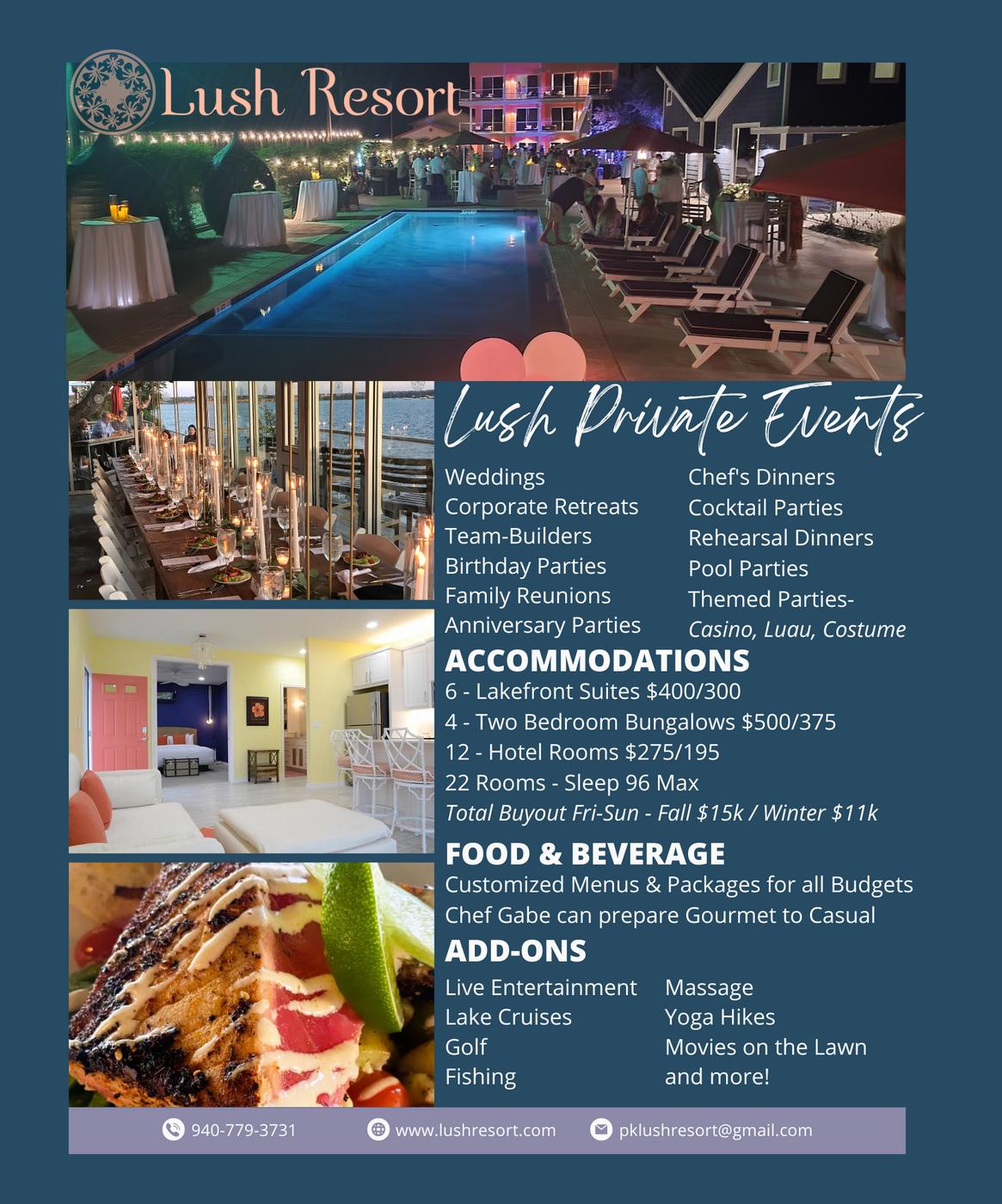 Cheney Crooks has several connections in the music industry, and the couple’s reception was a party to be remembered, taking over the entire resort It was a huge Texas country music “jam fest” featuring performers such as Austin Allsup, Zach Edwards, Blake Burrow, Randy Brown, Jordan Hendrix and Michael Webb Lush Resort provided all the food for the guests, and the ladies from Two Old Crows came in with late-night appetizers at the end of the affair.