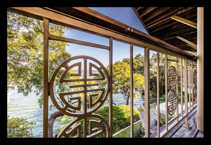 King’s X sits on a steep lot, with tiered gardens from Park Road 36 down to the water’s edge The home has a garage space at the top that leads down a tiered path to the main house Inside feels like being in a treehouse, with an incredible view of Hell’s Gate and Gaines Bend.
