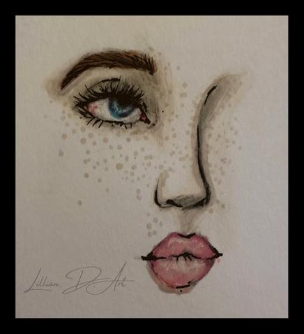 "I love drawing eyes and freckles." The beach with water colors and salt water! "I thought it would be so cool to paint on the beach with water straight from the ocean, so I did."