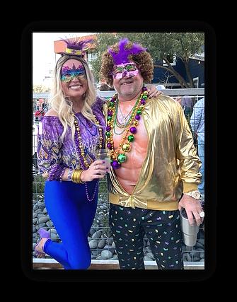 Picturedbelow: KevinandCheneyCrooksarealways readyforagoodtime,andthey'vebecomeknownfor theirpartycostumes. Whetherit'sMardiGrasatPK, theneighborhoodOctoberfestorathemedparty, suchasa"RighteousGemstone"soiree,theCrooks alwaysareodds-onfavoritestowin"bestdressed." Theylovegoodtimes,anditshows.