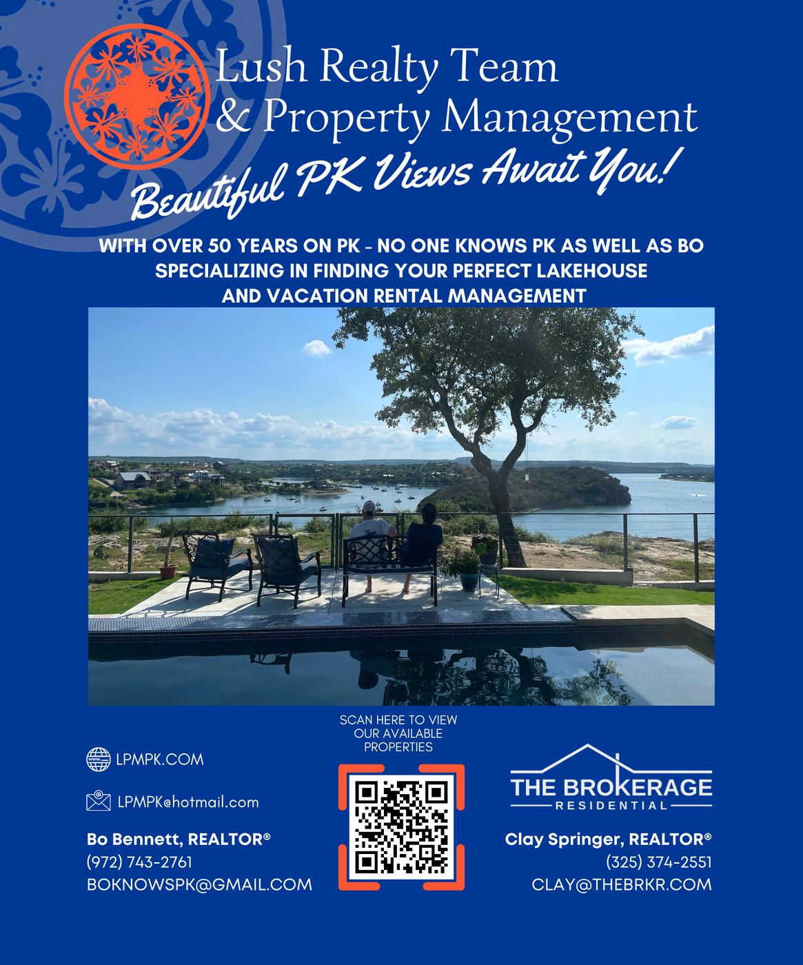 One evening while dining in Dallas, Krista Rogers picked up a real estate book with a Possum Kingdom listing It didn’t show the outside of the home, but it did show a picture of the view and the iron railing that surrounds the house From the view and the picture of the railing, she knew exactly which house it was: King’s X. She then showed the listing to her husband, and he traveled to PK the next day to look at the property He put an offer on the house, but with an option to back out while he did his due diligence