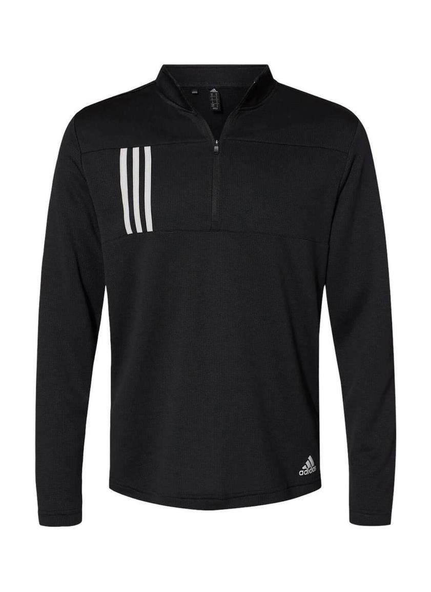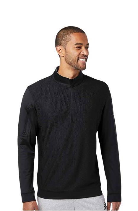 The adidas Men's Black Performance Textured Quarter-Zip is the perfect choice for healthcare facilities seeking high-quality 1/4-zips for medical teams. Designed with textured, moisture-wicking fabric, this quarter-zip pullover ensures comfort and durability for long shifts. Ideal for healthcare workwear and medical uniforms, it also makes for thoughtful medical school or nurse graduation gifts. Featuring the iconic adidas logo, this versatile and stylish piece offers both performance and a professional look for your staff.