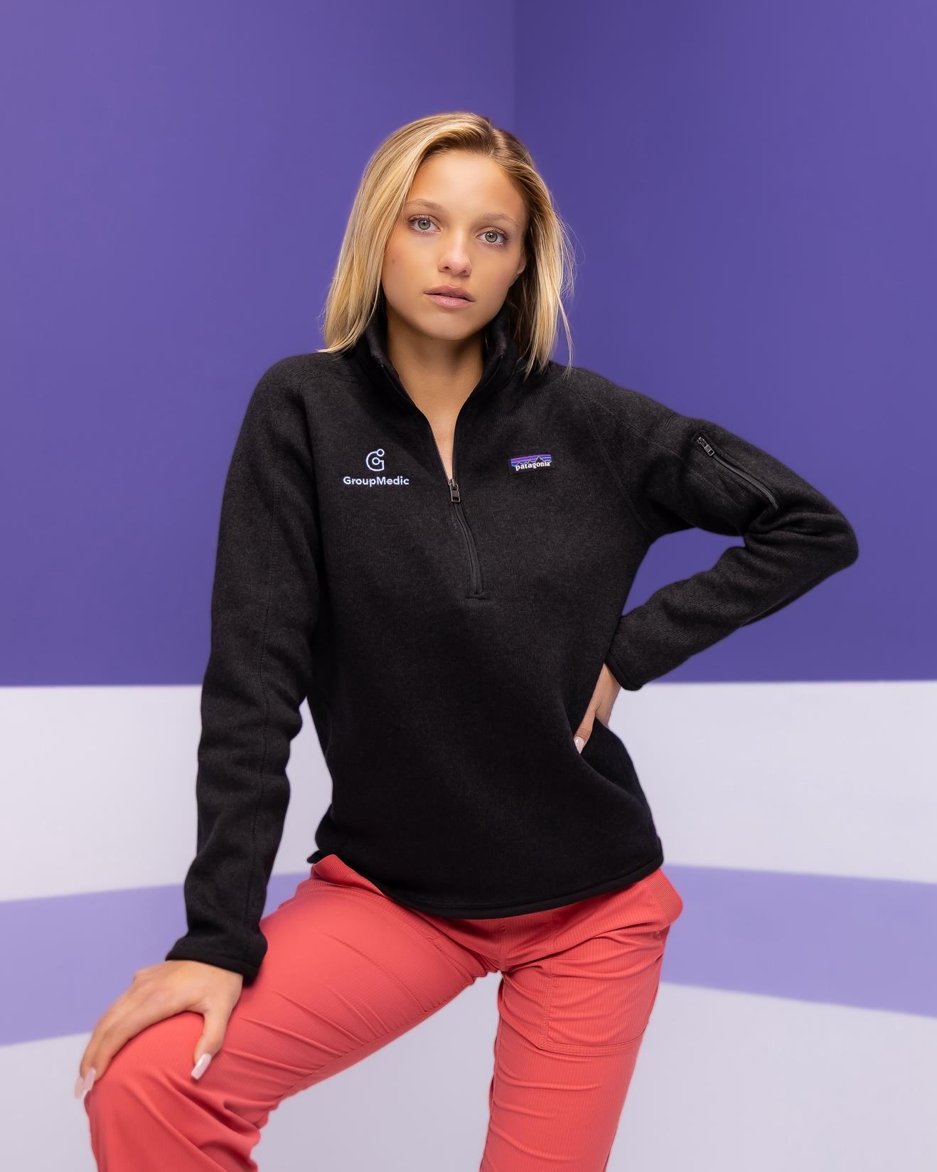 Keep your team cozy and professional with the Patagonia Women's Los Gatos Quarter Zip, a standout in embroidered quarter-zip pullovers. Crafted from 100% recycled polyester high-pile fleece, this pullover blends softness and warmth, making it perfect for busy healthcare professionals. The slouchy fit and quarter-zip design ensure all-day comfort and layering ease, while its Fair Trade Certified construction reflects your commitment to sustainability. Personalized Patagonia quarter-zip pullovers are an eco-friendly way to enhance your team's look and feel. Partner with PK Health Gear today to create branded Patagonia apparel that works as hard as your healthcare staff.