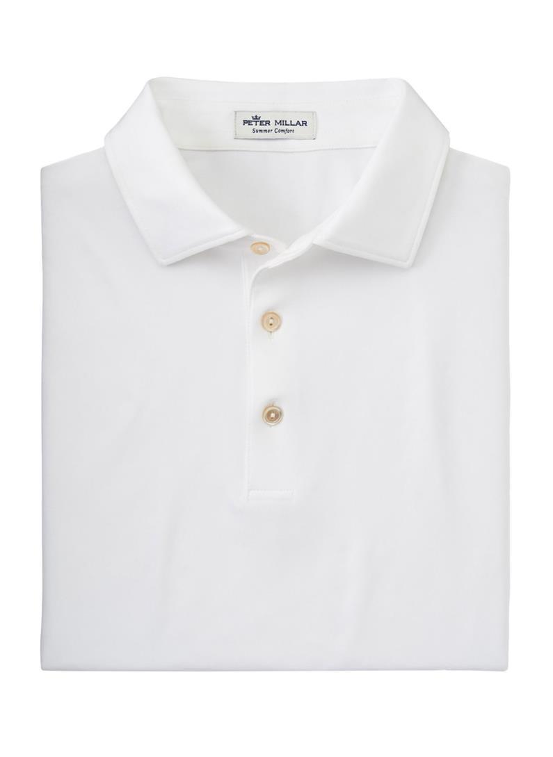 PETER MILLAR MEN'S WHITE SOLID PERFORMANCE POLO - SELF COLLAR