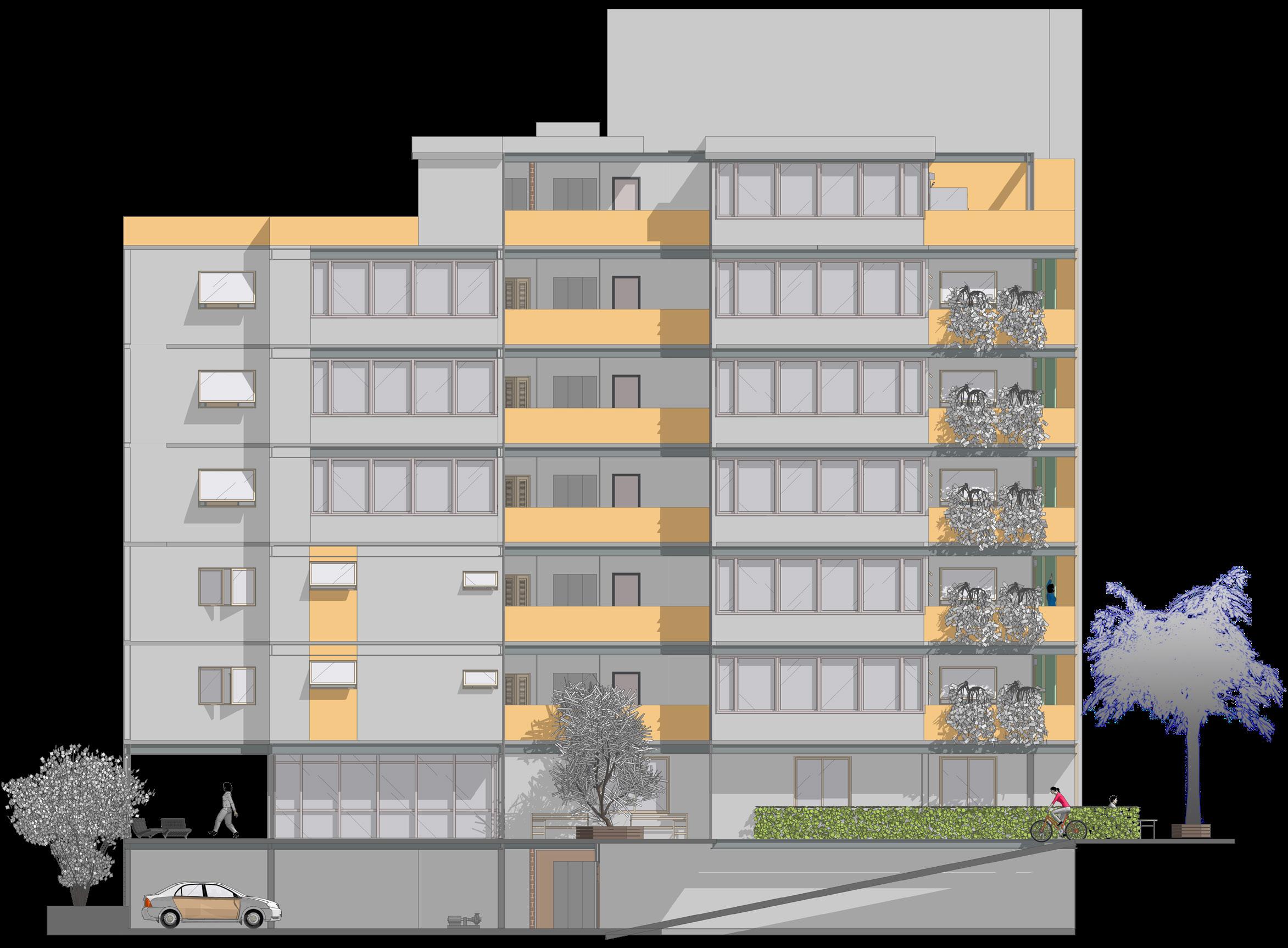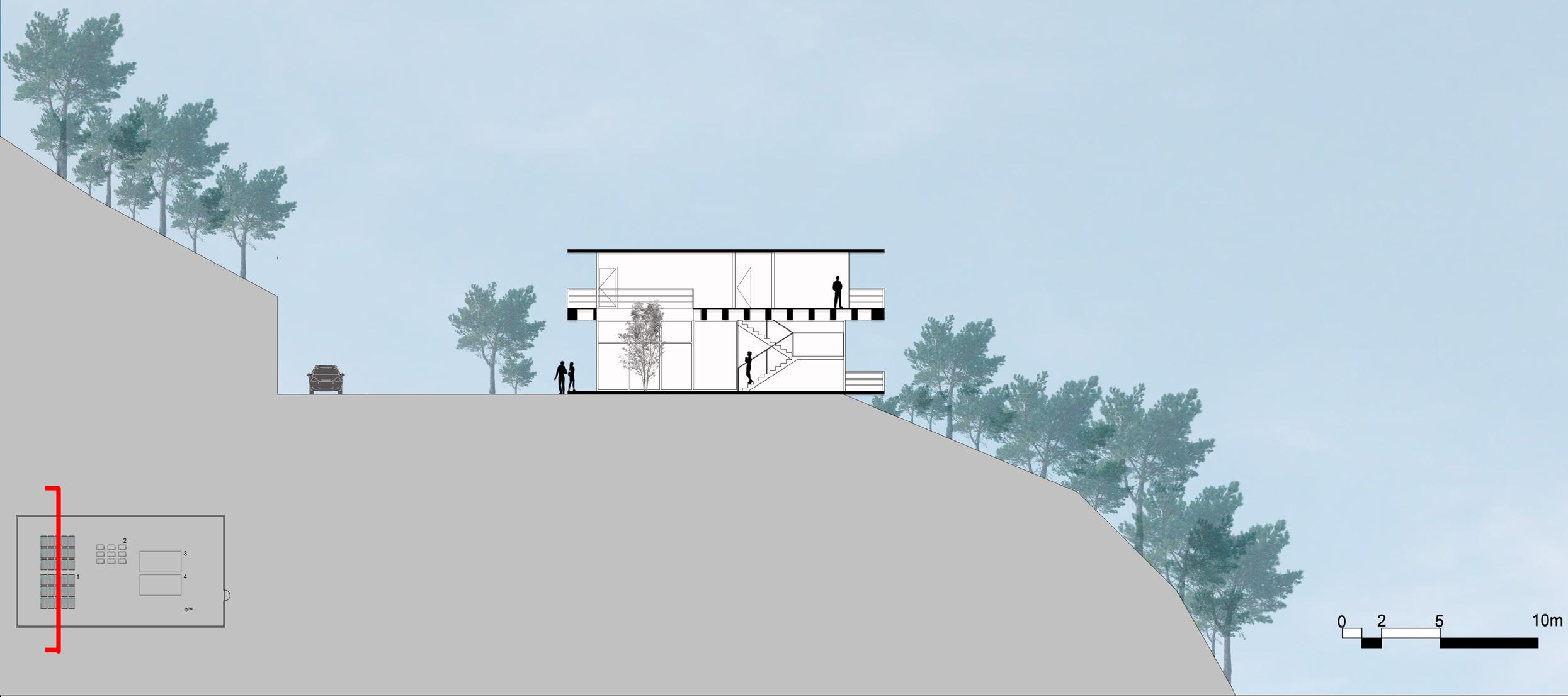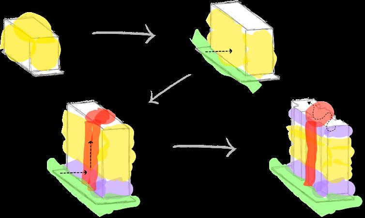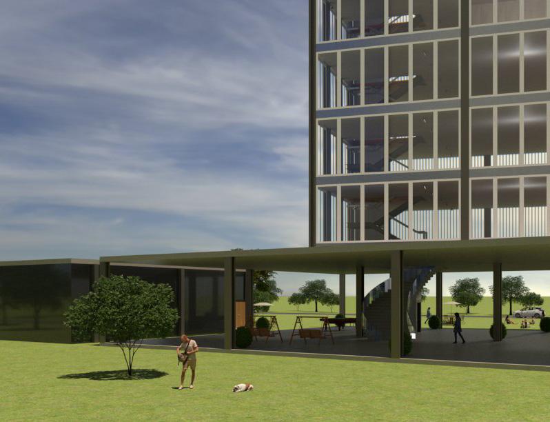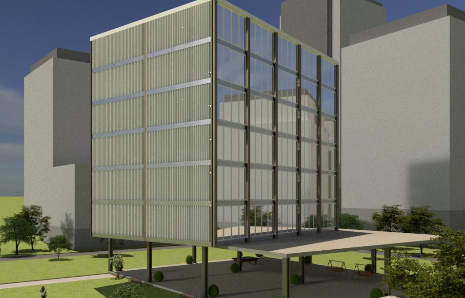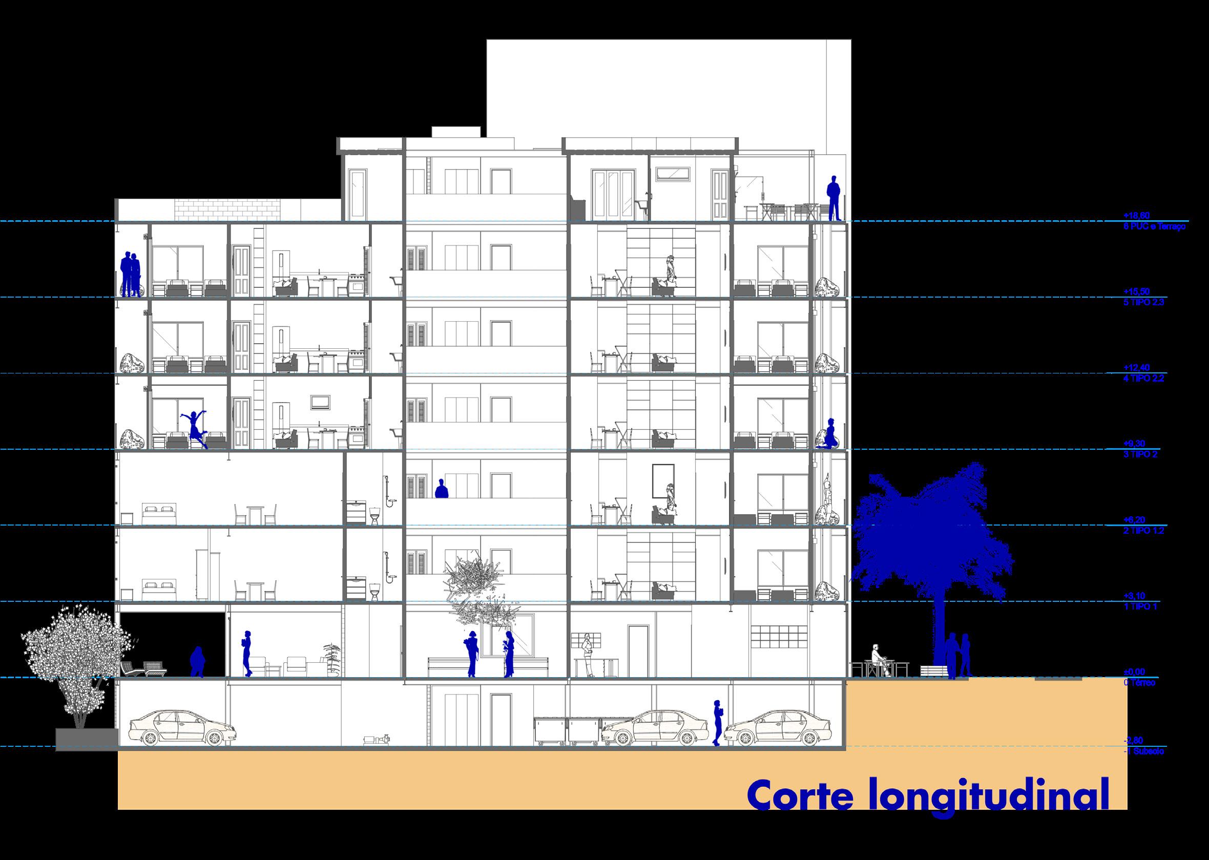 A escolha desta tipologia parte da premissa de que o projeto é extrovertido, ou seja, ele se comunica com o exterior do lote em que está situado, é pensado a partir do desejo de existir uma grande permeabilidade no edifício. A partir dessa comunicação do externo com o interno, é possível atravessar, conviver e habitar essas áreas dedicadas a isso no terreno.