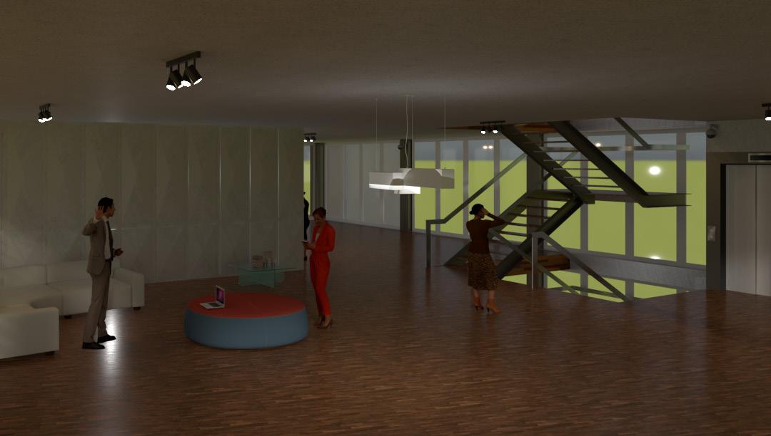 A quadra esportiva está no centro, e seu olhar atravessa a área formal através do alto pilotis no edifício, e chega até o pátio interno de convívio dos alunos, e dele é possível enxergar até fora da quadra do projeto, sendo interrompido apenas por um desnível que permite maior privacidade. A iluminação, ventilação e permeabilidade visual estarão sempre presentes nesta escola.