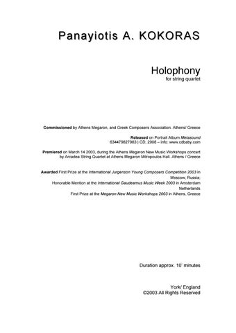 Panayiotis A. KOKORAS Holophony for string quartet